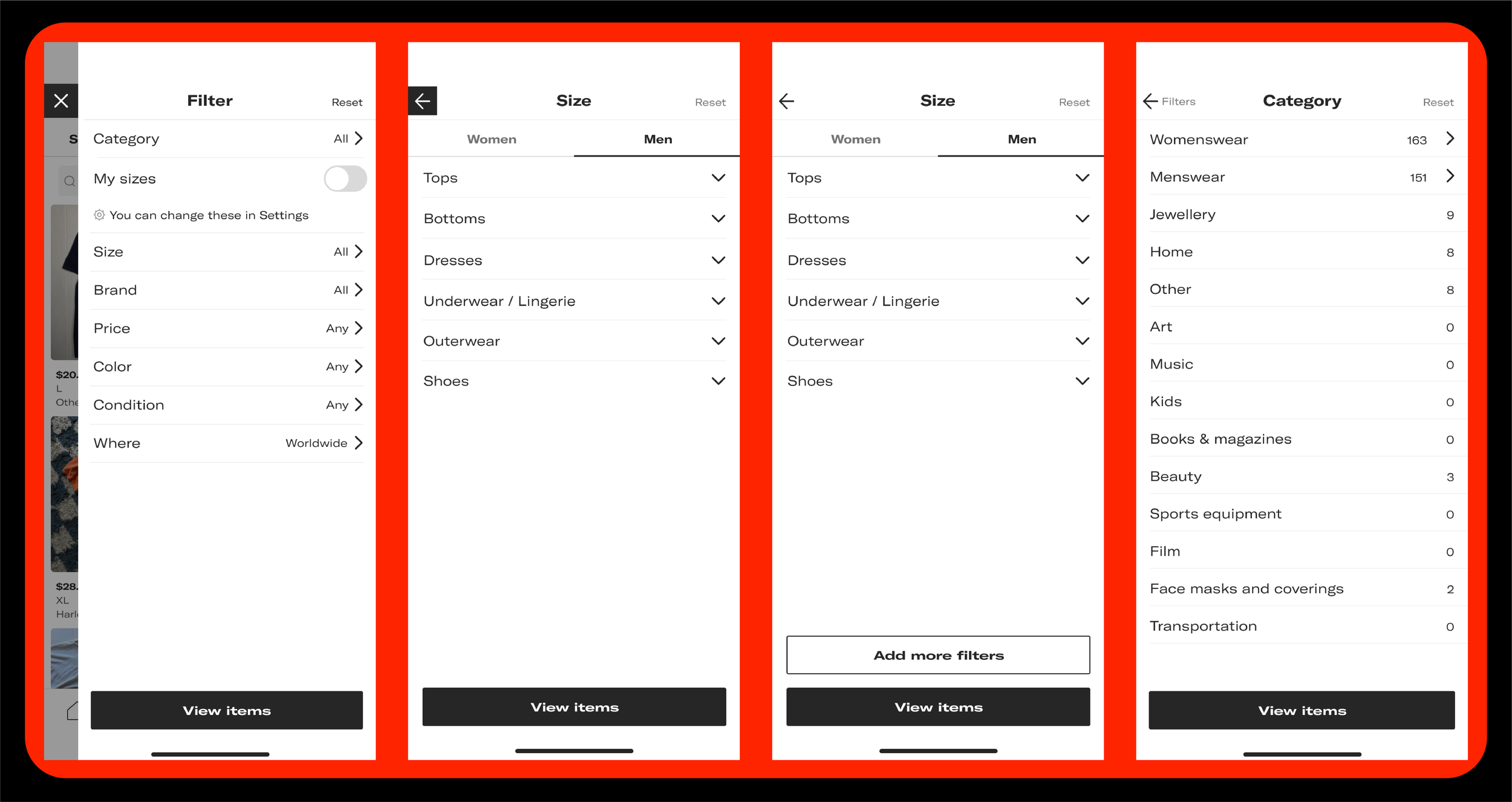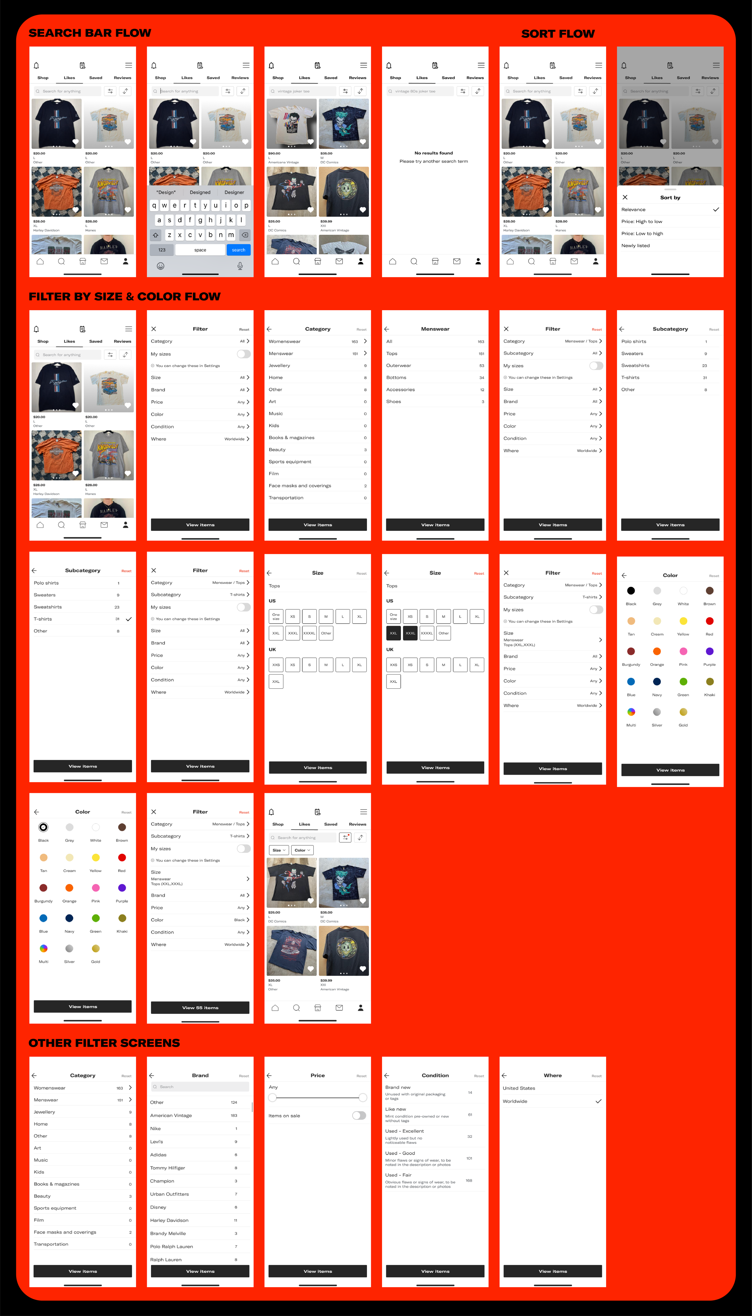 Enhance user experience by reducing intermediary steps and ensuring a seamless transition between different filter criteria. Addressing the clarity of associating sizes with various categories will help users make more informed selections. Moreover, evaluating the behavior of the top search bar during scrolling could contribute to a cleaner interface. Implementing these recommendations will further streamline the filter process, ensuring an intuitive and efficient experience for users seeking to refine their liked items on Depop.